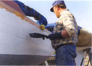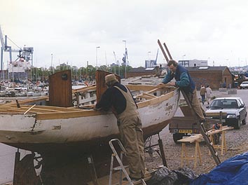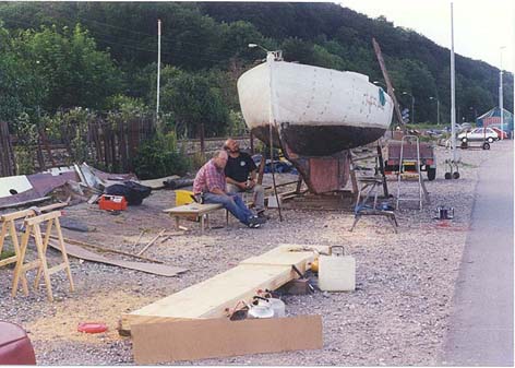| Kantforstærkning med fiber og epoxy. | Agterdækket i ny stærk udgave. |